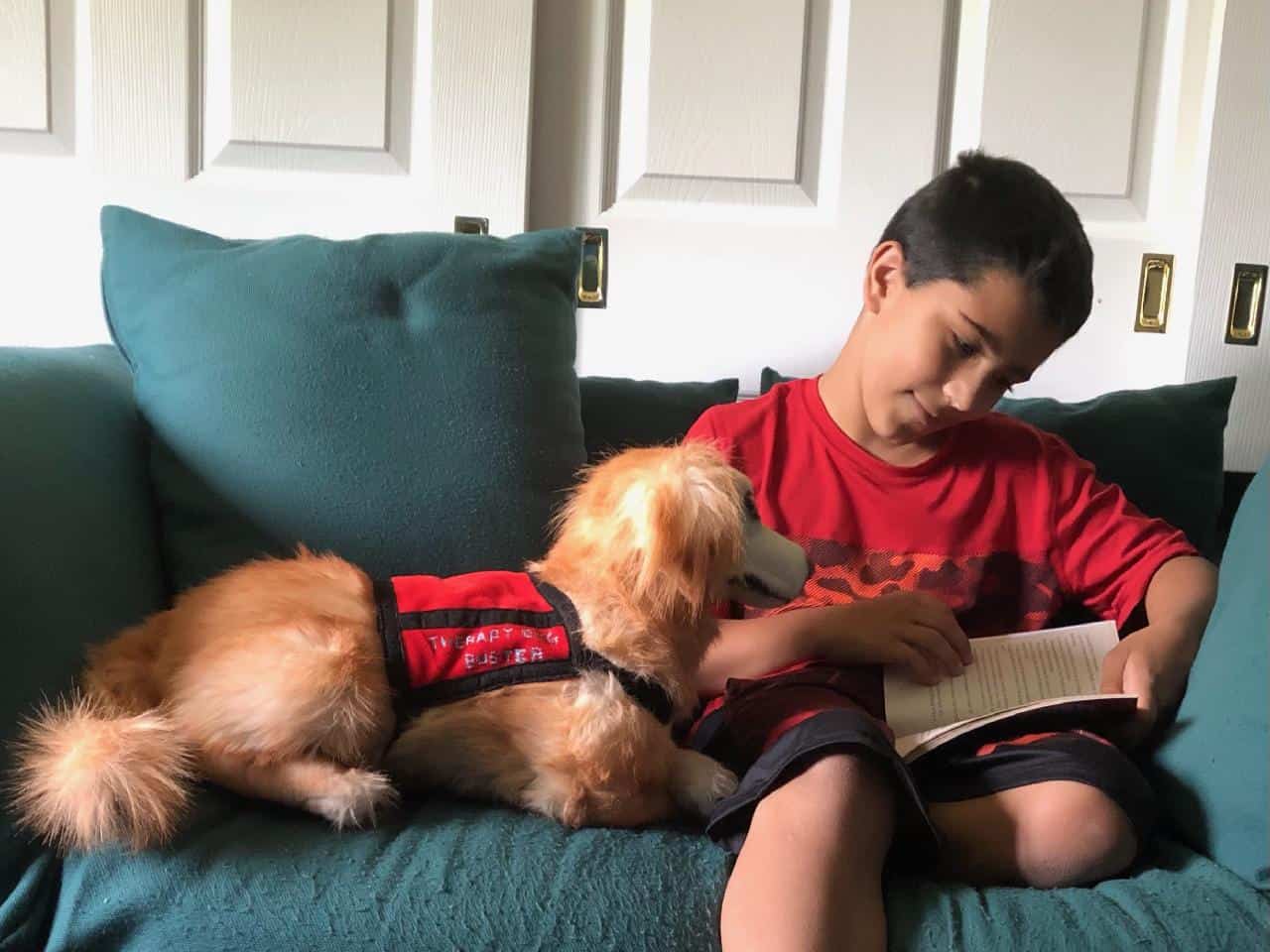 The Buster Reading Program started after Buster became a certified therapy dog in September of 2019, in a small town in North East New Jersey called Cedar Grove. “Our first-ever reading program was at our local library and he was such a natural, you would think he had been doing this for years!” Christina wrote.